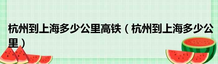 导读 大家好,今天小六子来为大家解答以下的问题,关于杭州到上海多少公里高铁,杭州到上海多少公里这个很多人还不知道,现在让我们一起来看看吧