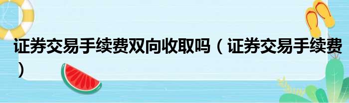 大家好,今天小六子来为大家解答以下的问题,关于证券交易手续费双向收取吗,证券交易手续费这个很多人还不知道,现在让我们一起来看看吧!