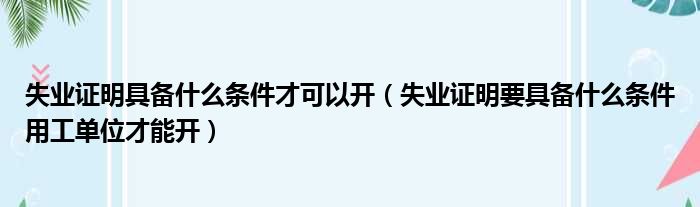 失业证明具备什么条件才可以开(失业证明要具备什么条件用工单位才能开)