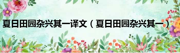 夏日田园杂兴其一译文(夏日田园杂兴其一)