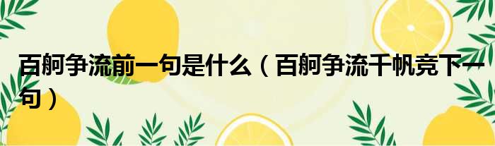 百舸争流前一句是什么(百舸争流千帆竞下一句)