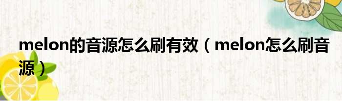 大家好,今天小六子来为大家解答以下的问题,关于melon的音源怎么刷有效,melon怎么刷音源这个很多人还不知道,现在让我们一起来看看吧!