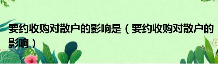 导读 大家好,今天小六子来为大家解答以下的问题,关于要约收购对散户的影响是,要约收购对散户的影响这个很多人还不知道,现在让我们一起来看看