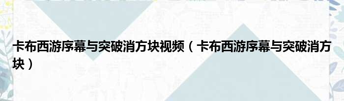 卡布西游序幕与突破消方块视频(卡布西游序幕与突破消方块)