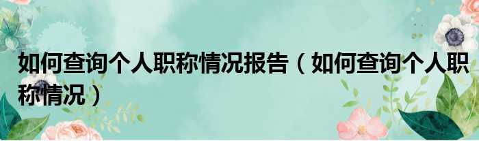 如何查询个人职称情况报告(如何查询个人职称情况)