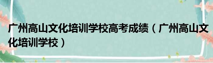 广州高山文化培训学校高考成绩(广州高山文化培训学校)