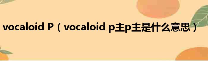 导读 大家好,今天小六子来为大家解答以下的问题,关于vocaloid P,vocaloid p主p主是什么意思这个很多人还不知道,现在让我们一起来看看吧!1