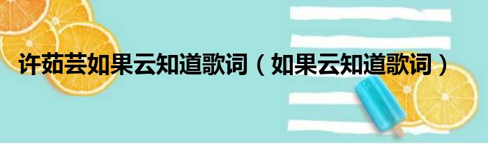 大家好,今天小六子来为大家解答以下的问题,关于许茹芸如果云知道歌词,如果云知道歌词这个很多人还不知道,现在让我们一起来看看吧!
