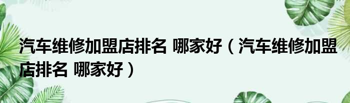 汽车维修加盟店排名 哪家好(汽车维修加盟店排名 哪家好)