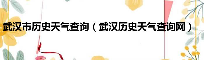大家好,今天小六子来为大家解答以下的问题,关于武汉市历史天气查询,武汉历史天气查询网这个很多人还不知道,现在让我们一起来看看吧!