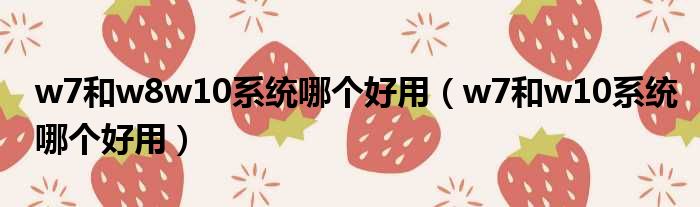 w7和w8w10系统哪个好用(w7和w10系统哪个好用)