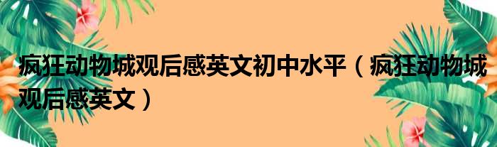 疯狂动物城观后感英文初中水平(疯狂动物城观后感英文)