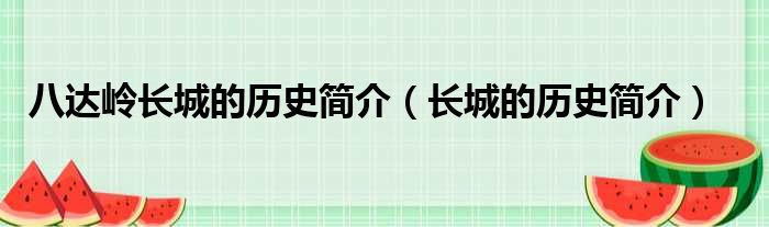 导读 大家好,今天小六子来为大家解答以下的问题,关于八达岭长城的历史简介,长城的历史简介这个很多人还不知道,现在让我们一起来看看吧!1、朋