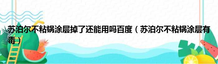苏泊尔不粘锅涂层掉了还能用吗百度(苏泊尔不粘锅涂层有毒)