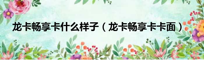 龙卡畅享卡什么样子(龙卡畅享卡卡面)
