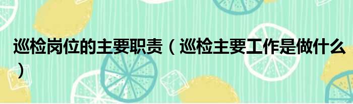 巡检岗位的主要职责(巡检主要工作是做什么)