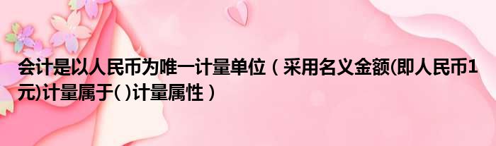 大家好,今天小六子来为大家解答以下的问题,关于会计是以人民币为唯一计量单位,采用名义金额(即人民币1元)计量属于( )计量属性这个很多人还不知道,现在让我们一起来看看吧!