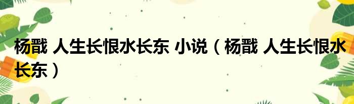 导读 大家好,今天小六子来为大家解答以下的问题,关于杨戬 人生长恨水长东 小说,杨戬 人生长恨水长东这个很多人还不知道,现在让我们一起来