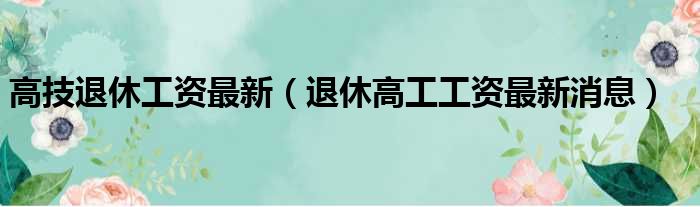 导读 大家好,今天小六子来为大家解答以下的问题,关于高技退休工资最新,退休高工工资最新消息这个很多人还不知道,现在让我们一起来看看吧!1、