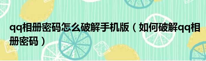 qq相册密码怎么破解手机版(如何破解qq相册密码)