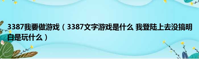 导读 大家好,今天小六子来为大家解答以下的问题,关于3387我要做游戏,3387文字游戏是什么 我登陆上去没搞明白是玩什么这个很多人还不知道,现