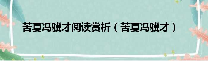 导读 大家好,今天小六子来为大家解答以下的问题,关于苦夏冯骥才阅读赏析,苦夏冯骥才这个很多人还不知道,现在让我们一起来看看吧!1、辽阔的秋