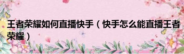 导读 大家好,今天小六子来为大家解答以下的问题,关于王者荣耀如何直播快手,快手怎么能直播王者荣耀这个很多人还不知道,现在让我们一起来看看