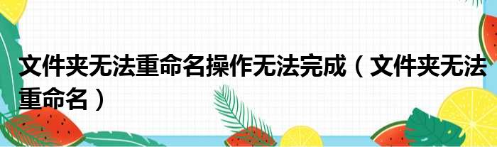 文件夹无法重命名操作无法完成(文件夹无法重命名)