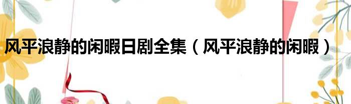 风平浪静的闲暇日剧全集(风平浪静的闲暇)