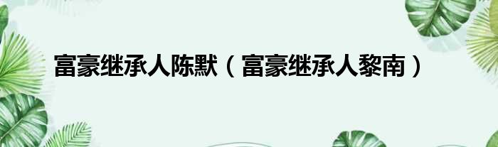 大家好,今天小六子来为大家解答以下的问题,关于富豪继承人陈默,富豪继承人黎南这个很多人还不知道,现在让我们一起来看看吧!
