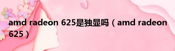 导读 大家好,今天小六子来为大家解答以下的问题,关于amd radeon 625是独显吗,amd radeon 625这个很多人还不知道,现在让我们一起来看看吧