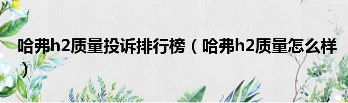 哈弗h2质量投诉排行榜(哈弗h2质量怎么样)