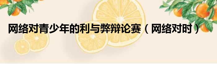 大家好,今天小六子来为大家解答以下的问题,关于网络对青少年的利与弊辩论赛,网络对时这个很多人还不知道,现在让我们一起来看看吧!