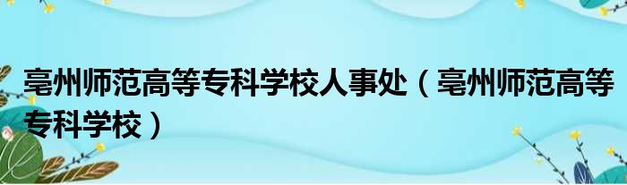 亳州师范高等专科学校人事处(亳州师范高等专科学校)