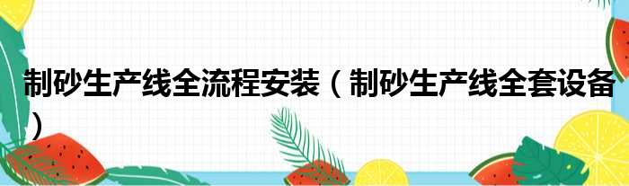 导读 大家好,今天小六子来为大家解答以下的问题,关于制砂生产线全流程安装,制砂生产线全套设备这个很多人还不知道,现在让我们一起来看看吧!1