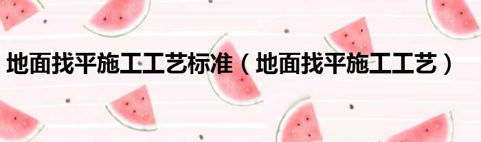 地面找平施工工艺标准(地面找平施工工艺)