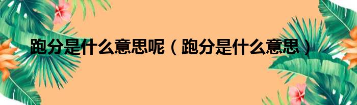 跑分是什么意思呢(跑分是什么意思)
