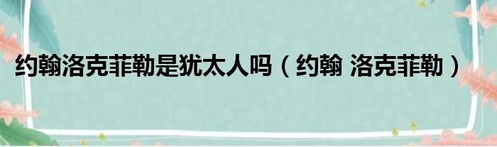 约翰洛克菲勒是犹太人吗(约翰 洛克菲勒)