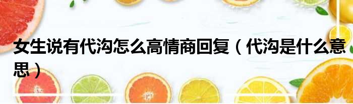 导读 大家好,今天小六子来为大家解答以下的问题,关于女生说有代沟怎么高情商回复,代沟是什么意思这个很多人还不知道,现在让我们一起来看看吧