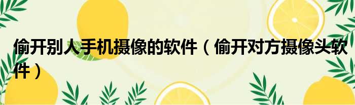 偷开别人手机摄像的软件(偷开对方摄像头软件)