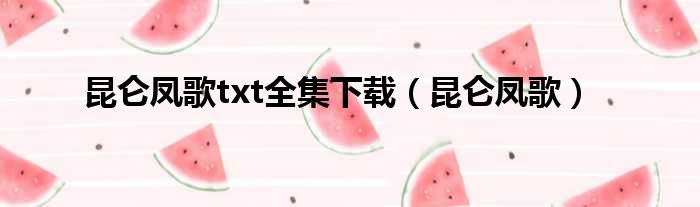 昆仑凤歌txt全集下载(昆仑凤歌)