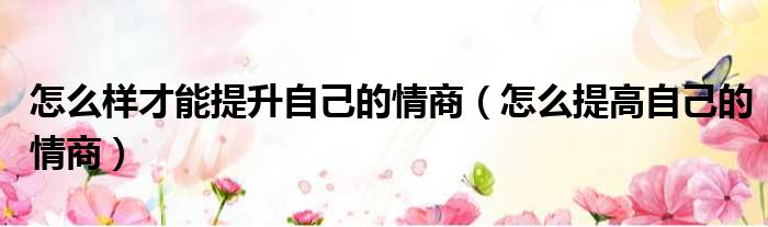 怎么样才能提升自己的情商(怎么提高自己的情商)