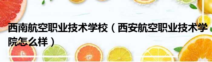 西南航空职业技术学校(西安航空职业技术学院怎么样)