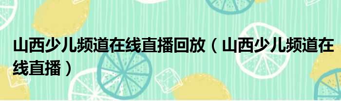 山西少儿频道在线直播回放(山西少儿频道在线直播)