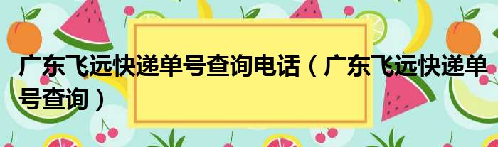广东飞远快递单号查询电话(广东飞远快递单号查询)