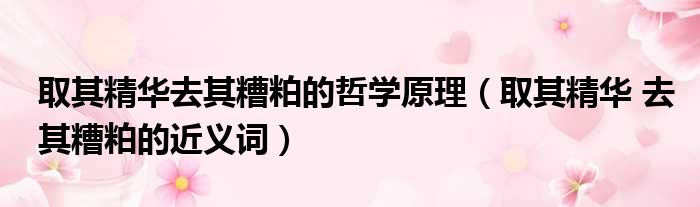 取其精华去其糟粕的哲学原理(取其精华 去其糟粕的近义词)