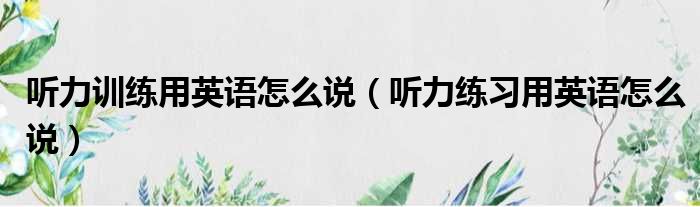 听力训练用英语怎么说(听力练习用英语怎么说)