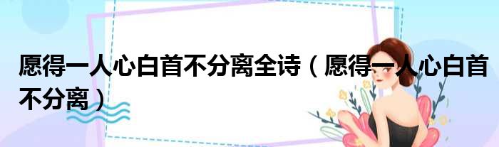 导读 大家好,今天小六子来为大家解答以下的问题,关于愿得一人心白首不分离全诗,愿得一人心白首不分离这个很多人还不知道,现在让我们一起来看