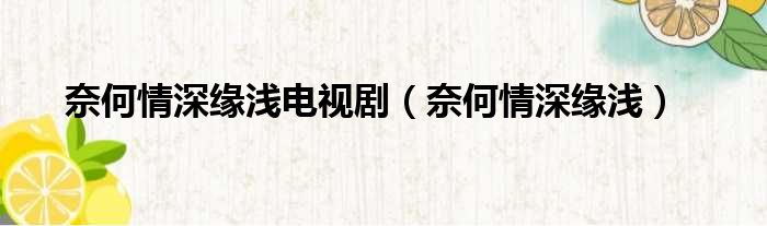 奈何情深缘浅电视剧(奈何情深缘浅)