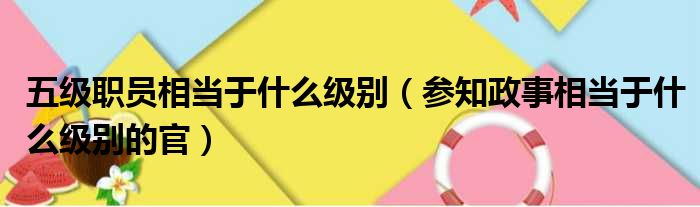 导读 大家好,今天小六子来为大家解答以下的问题,关于五级职员相当于什么级别,参知政事相当于什么级别的官这个很多人还不知道,现在让我们一起